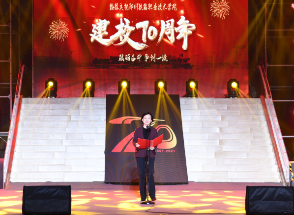 校长马玉霞主持庆祝大会时表示,自1951年在古都开封建校,学校肩负着培养社会主义合格建设者和可靠接班人的重要使命,坚实地走过了七十年峥嵘岁月。几代铁院人奋发有为、砥砺前行、接续奋斗,创造了郑州铁院的辉煌历史。进入新时代,学校要全面贯彻党的教育方针,落实立德树人根本任务,把握时代机遇,加强内涵建设,认真谋划学校“十四五”发展规划,深入推进“双高计划”建设,不断推进学校各项事业高质量发展,在服务和融入新发展格局中担当新使命、展现新作为、创造新业绩。
