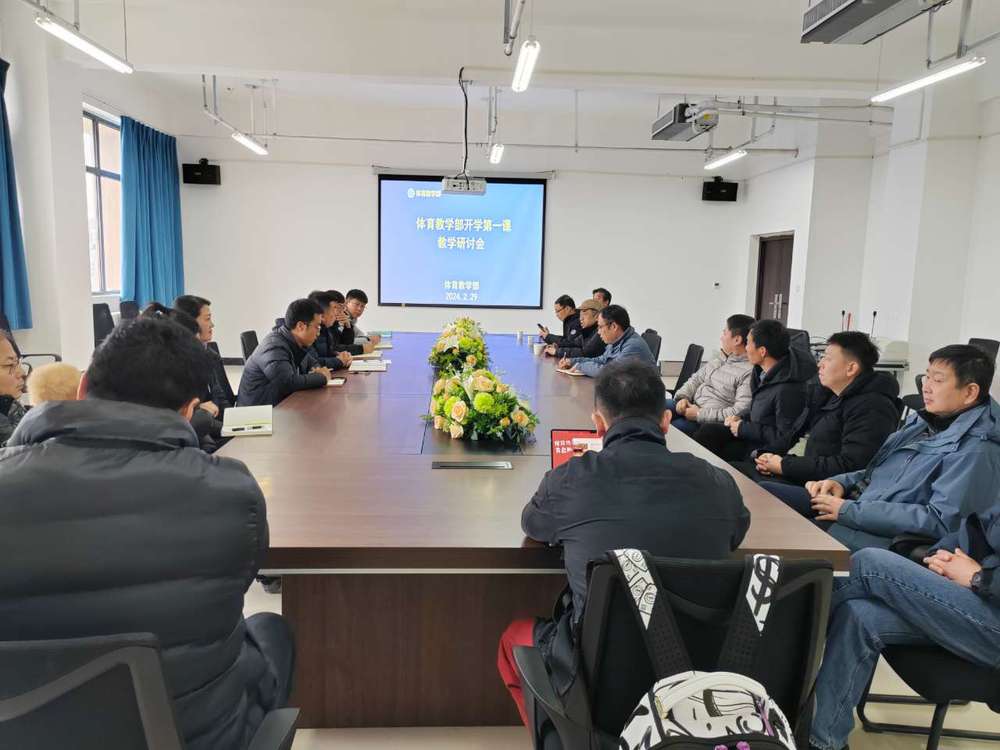 为帮助学生在体育锻炼中享受乐趣、增强体质、健全人格、锤炼意志,新学期伊始,体育教学部于2月29日在部办413会议室开展“开学第一课”集体教研活动,部门全体教师参加,活动由王珍主持。