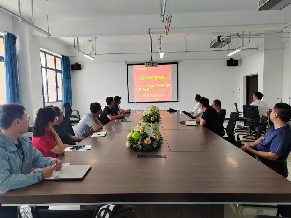 为深入推进党纪学习教育走深走实,充分发挥反面典型警示教育作用,切实教育引导广大党员干部做到学纪、知纪、明纪、守纪,6月18日,体育教学部直属党支部召开党纪学习教育“高校党员干部违纪违法典型案例”警示教育专题学习会,全体党员参加本次学习,支部书记王珍主持会议。