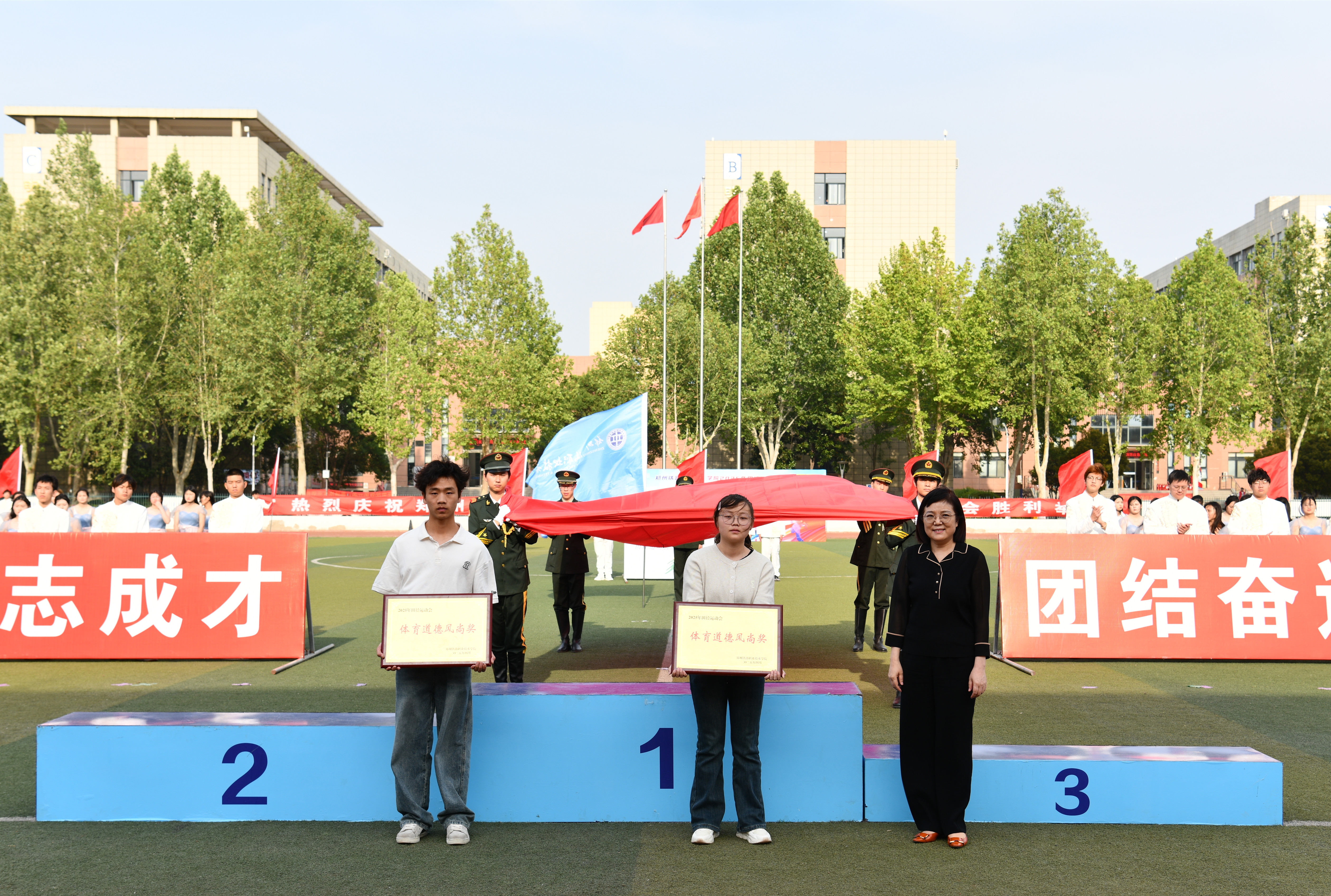 学校领导分别为获奖集体、运动员颁奖,现场响起热烈掌声。