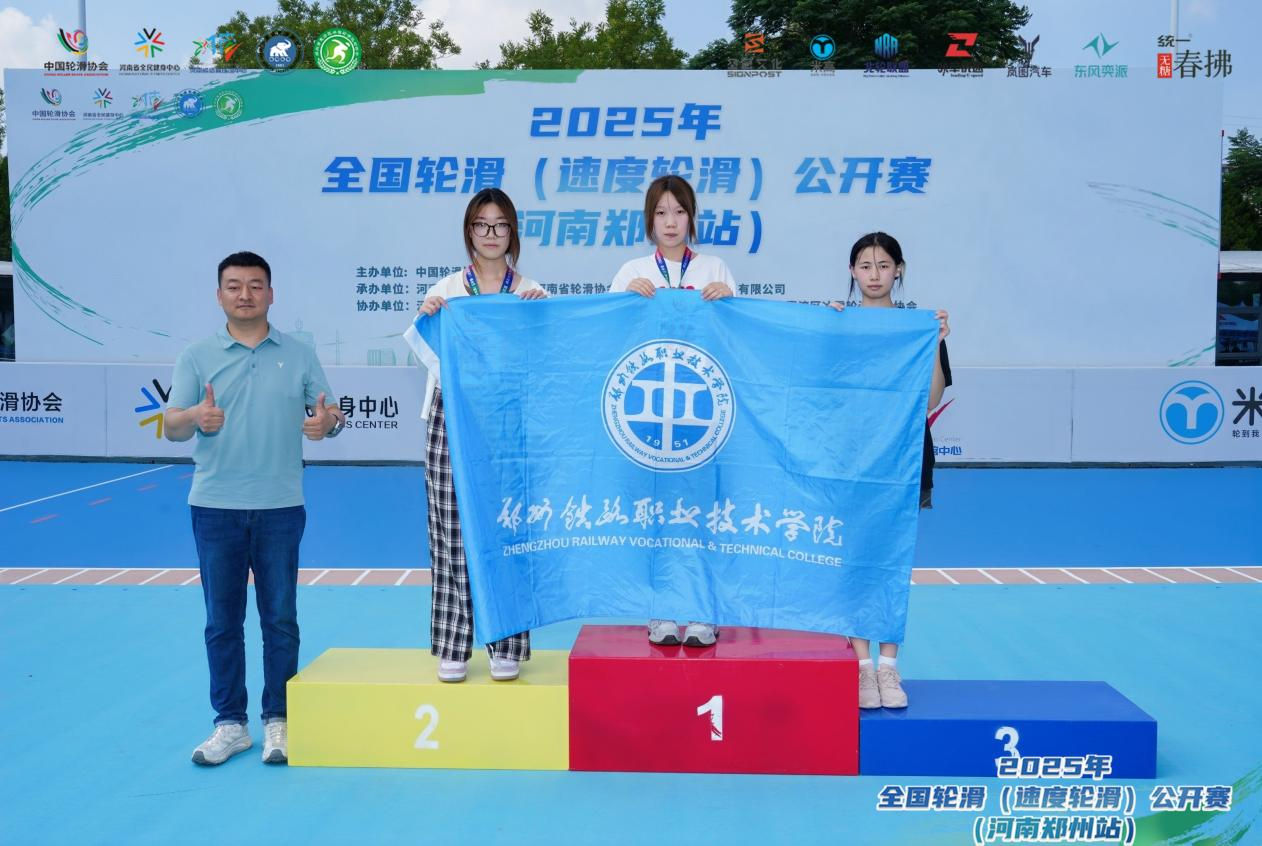 7月26日,2025 年全国轮滑(速度轮滑)公开赛(河南郑州站)在河南省郑州市惠济区领军优速速滑中心盛大开幕。本次大赛由中国轮滑协会主办,吸引了来自全国20多个省的82个单位700余名运动员齐聚一堂,共同在赛道上展开速度与技巧的较量。经过为期2天的激烈角逐,我校轮滑队勇夺成年女子500+D争先赛冠军、1000米争先赛冠军,成年女子500+D争先赛亚军、1000米争先赛亚军,以及成年男子3000米接力赛季军的优异成绩,以两金两银一铜的亮眼战绩为学校增光添彩。