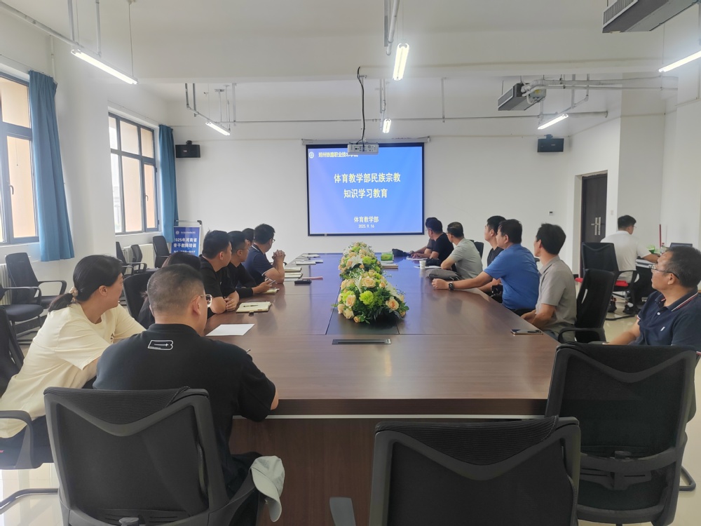 为强化部门教职工民族宗教政策认知,筑牢校园意识形态安全防线,体育教学部于9月16日在科创楼414组织开展民族宗教知识学习教育活动,部门全体教职工参与部门主任王珍主持。