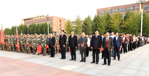 9月27日上午,我校在铁龙广场举行升国旗仪式,庆祝新中国成立70周年,弘扬爱国主义精神,增强民族自豪感,引导青年学生砥砺奋进、筑梦前行。全体校领导、中层干部、团总支书记、辅导员和新校区2019级新同学参加仪式。升旗仪式由团委书记高文天主持。