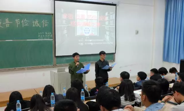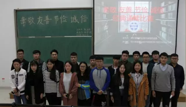 2018年9月25日晚自习期间,我校于新校区开展了以“孝敬、友善、节俭、诚信”为主题的经典诵读比赛,该活动由校团委主办、校学习部承办。 活动开始,青春靓丽的主持人向在场的各位评委与嘉宾介绍了本次比赛活动的意义所在——为大力弘扬中华民族尊老敬老的传统美德,积极培育和践行社会主义核心价值观,营造“敬老、尊贤、守礼”的浓厚氛围。比赛过程中,护理系代表朗诵的《最美不过夕阳红》表现出了年轻一代对老一辈的深深的敬重之情;电子工程系的《你养我长大,我伴你到老》不仅慷慨激昂、饱含深情,而且体现了血浓于水的至上亲情。在场的各位参赛人员赢得了现场热烈的掌声……最后校广播站负责人对这次比赛进行点评。经过激烈的角逐,获得第一名的选手是:电子工程系马嫣然;获得第二名的选手是:护理学院尹玉印、医学技术系徐锦华;获得第三名的选手是:旅游商贸系田梦。 这次比赛活动不仅引导同学们在经典诵读中了解重阳节的节日文化,感受传统文化魅力,而且营造了浓厚的社会文化氛围,进一步加深了同学们的文化归属感,充分展现了铁院学子积极向上的精神风貌。