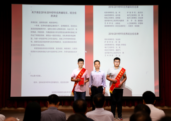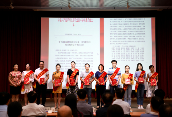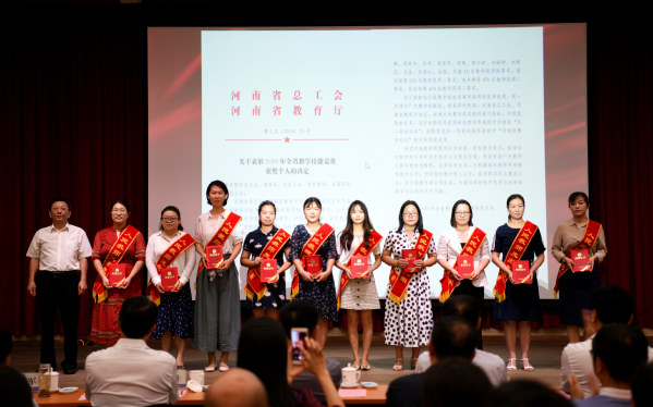 在欢快的音乐声中,教育部首批“全国高校黄大年式教师团队”负责人、上一届全国优秀教师获得者、与会校领导先后宣读表彰文件,向12名优秀辅导员、8名优秀班主任、25个先进科室、132名优秀教师和优秀教育工作者颁奖,为河南省文明教师、全省教学技能竞赛获奖个人、河南省教育厅学术技术带头人、河南省教育系统先进集体和先进工作者、河南省五一劳动奖获得者颁奖。