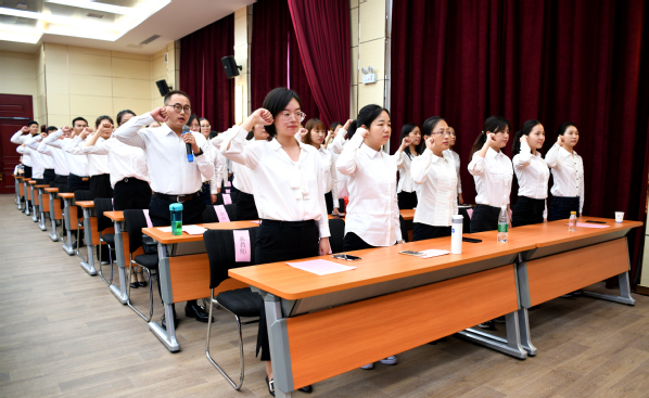 “我志愿做一名光荣的人民教师,忠诚人民教育事业,贯彻党的教育方针。爱国守法,敬业爱岗;教书育人,关爱学生......”在新教师入职宣誓仪式上,57名新教师郑重宣誓,表达了对教育发展、国家富强和民族复兴的使命担当和信心决心。