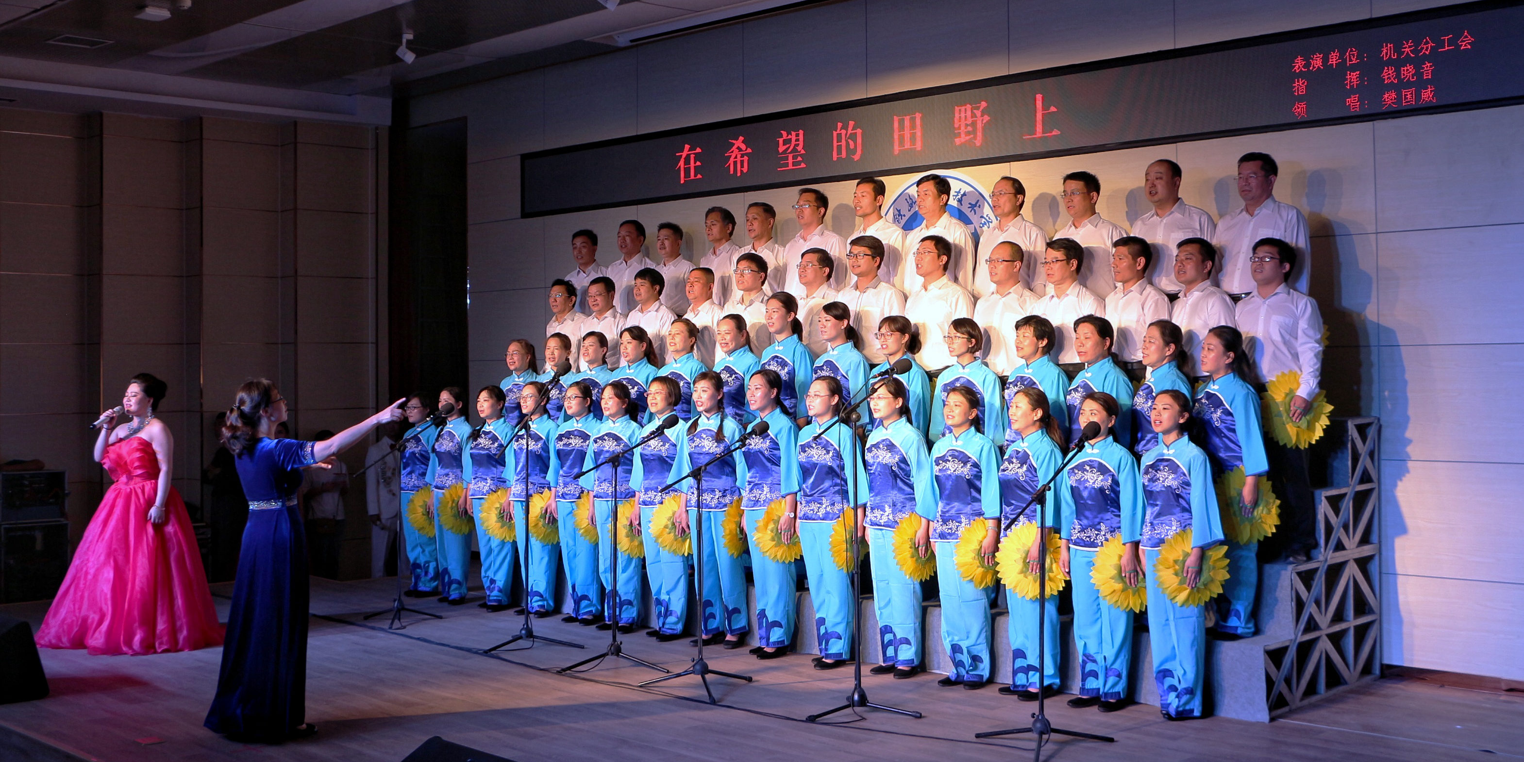比赛在机关分工会合唱队的《在希望的田野上》中拉开序幕,优美的旋律,饱满的热情,抒发了全体教职工对祖国繁荣富强的美好祝愿和对新生活、新时代的赞美;《团结就是力量》、《保卫黄河》等激昂高亢的歌曲唱出了中国共产党建立新中国的艰苦历程,表达了对革命先辈不怕牺牲保卫祖国的崇高敬意;《祖国不会忘记你》、《唱支山歌给党听》等浑厚而抒情的歌曲唱出了对伟大祖国的无限热爱和对党的真诚祝福;《红星歌》、《打靶归来》等一首首耳熟能详的经典曲目引起了大家的强烈共鸣,赢得了观众们的阵阵掌声。