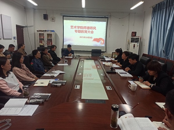 根据《中共mg娱乐电子游戏官网委员会关于印发师德专题教育实施方案的通知》精神,结合党史学习教育,为提高教师队伍素质,践行新时代师德规范。10月8日,艺术学院党总支在学院会议室1316召开师德师风专题教育大会,会议由艺术学院党总支书记程萍主持,全体教师参会。