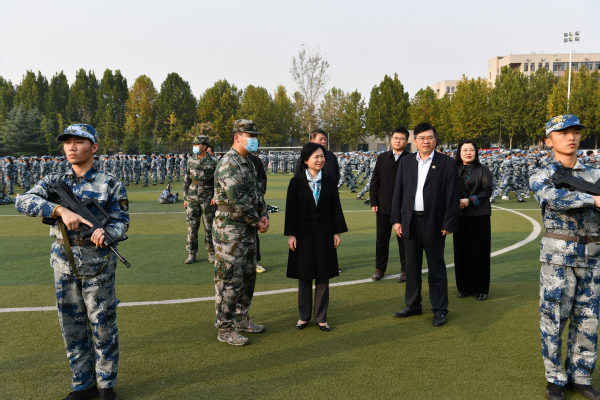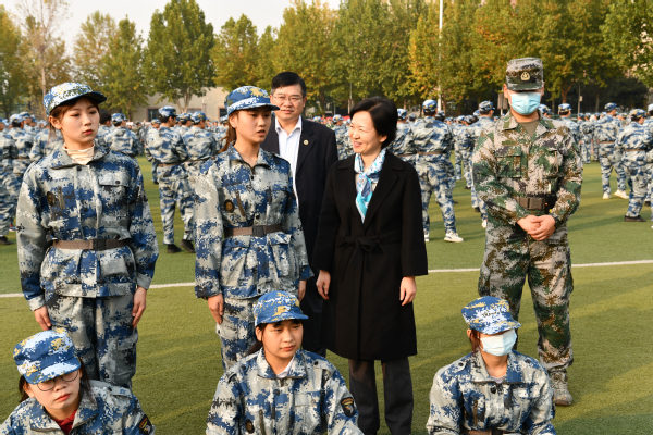 军训期间,校长马玉霞、副校长徐宏平来到军训现场,详细询问了军训开展情况,分别查看了复兴书院、二七书院、天使书院、丝路书院新生军训方队,亲切询问了大家训练感受,鼓励新生要充分发扬艰苦奋斗作风,磨练坚强意志,培养集体主义观念,不断增强个人身心素质。