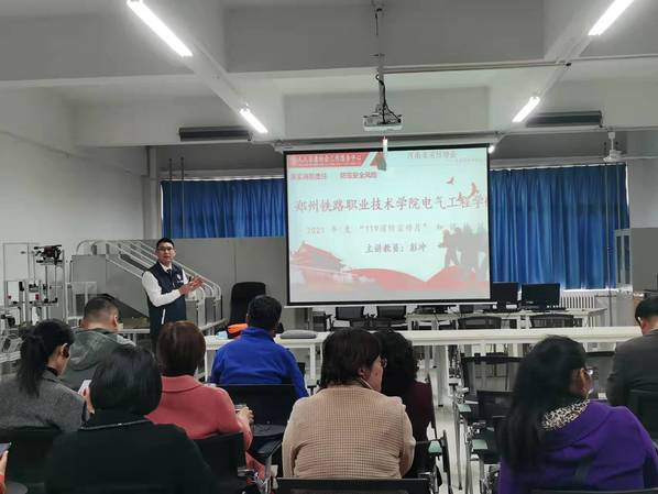 11月16日,在第三十个全国消防宣传日之际,电气工程学院邀请河南省消防协会为学院全体教师开展 “119消防宣传月”知识讲座活动。河南省消防协会彭冲教员深入浅出介绍了火灾的形成、火灾发生后的自救、逃生技巧和消防器材的使用方法等,生动形象的解答了老师们对消防安全常识的疑问,纠正了大家消防安全日常认识误区, 切实提高了教师自防自救能力,全体教师对火灾的隐蔽性、突发性和严重性有了深刻认识,对今后进一步做好消防工作,消除安全隐患,起到了良好的警示和促进作用。