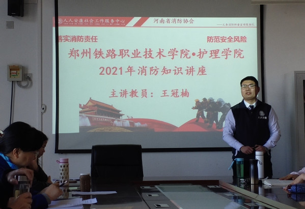 11月23日下午,护理学院邀请河南省消防协会王冠楠教官开展消防知识安全讲座。王教官从消防日常检查、疏散逃生的基本常识、消防火灾的预防和应急处置、消防器材的正确使用方法等方面进行讲解。同时,结合各地火灾案例,用“血的教训”警示教职工要高度重视消防安全,加强消防安全管理,积极主动做好单位及家庭的消防安全工作。随后,王教官针对大家在实际生活中遇到的一些问题进行了详细解答,提高大家对消防安全工作的认知和了解。