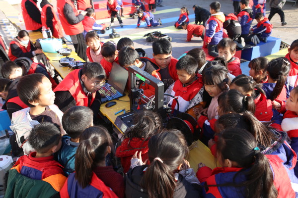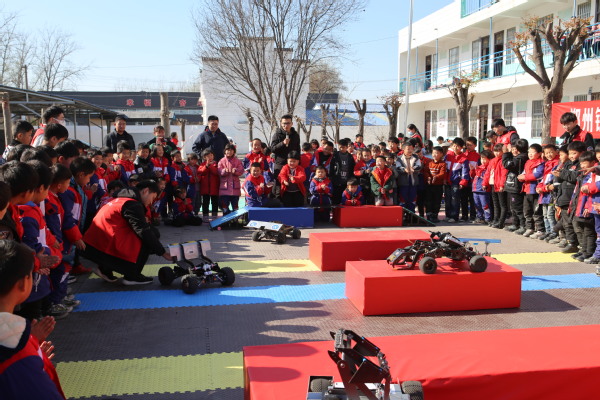 12月1日,按照学校党委统一部署,在党委组织部协调安排下,校团委、创新创业学院组织我校机器人科技创新协会、无线电协会师生赴睢县蓼堤镇大岗村唐学元希望小学开展科技教育进校园活动,为全校260多名学生带来了一场机器人科技创新作品展示的感官体验。