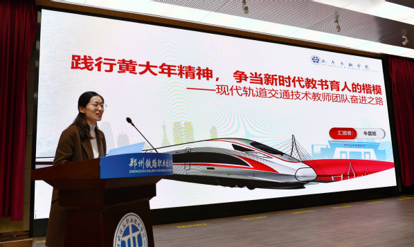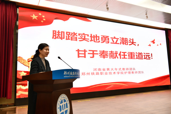 报告会首先由我校国家级黄大年式教师团队--机车车辆学院现代轨道交通技术团队进行宣讲,宣讲人牛晨旭老师以《践行黄大年精神,争当新时代教书育人的楷模--现代轨道交通技术教师团队奋进之路》为题,通过不忘初心,榜样力量立典范;矢志不渝,中坚力量拼向前;前赴后继,百花齐放春满园三个篇章,讲述了团队成员舍小家为大家、无私奉献、全面育人的感人事迹。接着,我校河南省黄大年式教师团队--护理学院护理教师团队宣讲人曹婧老师,以《脚踏实地勇立潮头,甘于奉献任重道远》为题进行宣讲,通过滚烫热忱的赤子情怀、学为人师行为世范、任重道远引路前行三个章节,讲述了团队成员以生为本、敢于创新、勇挑重担的责任担当。