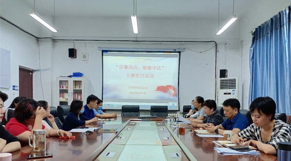 为切实推动学校党风廉政建设宣传教育月活动,营造“守纪律、讲规矩”的崇廉尚洁良好氛围,不断深化党员干部依法从政、依规履职教育,教师廉洁执教教育,6月7日,艺术学院党总支在学院会议室组织开展了“崇廉尚洁 敬德守法”主题党日活动。学院全体教师党员参会。