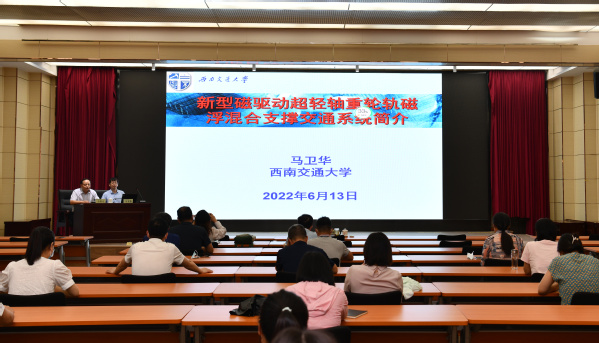 6月13日,西南交通大学牵引动力国家重点实验室博士生导师马卫华研究员应邀来校作“新型磁驱动超轻轴重轮轨磁浮混合支撑交通系统”专题学术讲座。副校长李福胜主持讲座,轨道交通专业相关老师到场聆听。