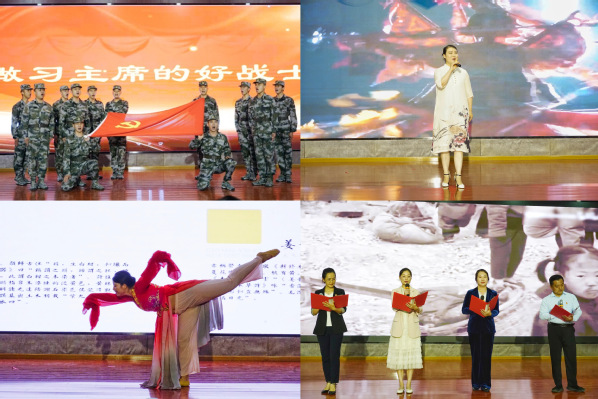 在展演活动中,退伍大学生士兵带来歌曲《做习主席的好战士》,他们深情款款的演唱让师生领略到了退伍大学生对祖国的热爱以及对军旅生涯的细腻体验;舞蹈表演《wake up》、《Tell me &. Flower》的舞者们带来精彩绝伦的视听盛宴,让大家感受到青春摇曳跳动的活力;配乐诗朗诵《我的南方和北方》、《青春中国》充满激情和活力,展示了汉字的优美和语言的精妙;歌曲《等着我亲爱的人》、《故乡是北京》歌声婉转动听,带来了一场非同凡响的听觉盛宴;二胡独奏《赛马》、古筝独奏《枫桥夜泊》演奏清晰,节奏准确,旋律流畅完整;古典舞《荣华行,国芳》韵味十足、神形兼备,极富韵律感和优雅美,不得不让人感叹中国古典艺术之伟大;展演在大合唱《我和我的祖国》中落下帷幕,歌声中大家感受到了祖国的伟大和美好。