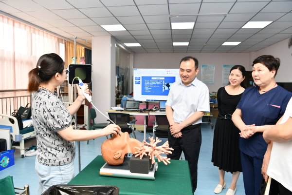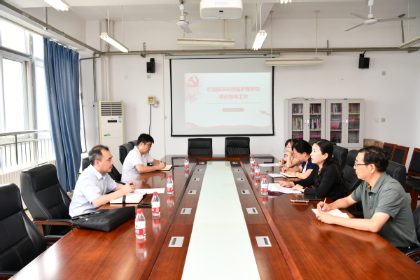 调研过程中,田道敏查看了护理学院实训基地建设情况,看望了护理学院备赛河南省高等职业教育教学能力大赛的教师团队,听取了护理学院办学沿革、专业建设、师资队伍、人才培养、科学研究、社会服务等情况汇报,并对护理学院发展提出建议,要以“党建工作样板支部”培育工作为引领,积极推进“三教”改革,强化科技赋能创新驱动,大力推进产教融合、校企合作,紧盯省级、国家级标志性成果,构建科研团队、教学团队和竞赛团队,注重双院协同,互为支撑,凝心聚力做好各项工作。