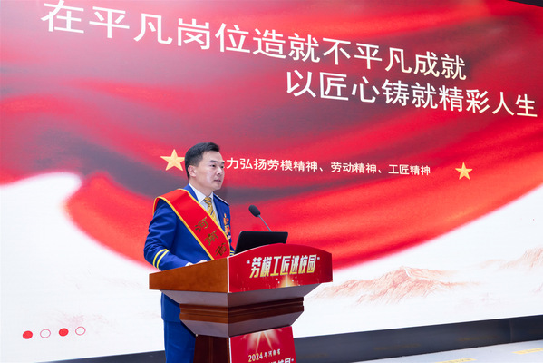党委副书记、纪委书记谢乾为劳模工匠颁发聘书