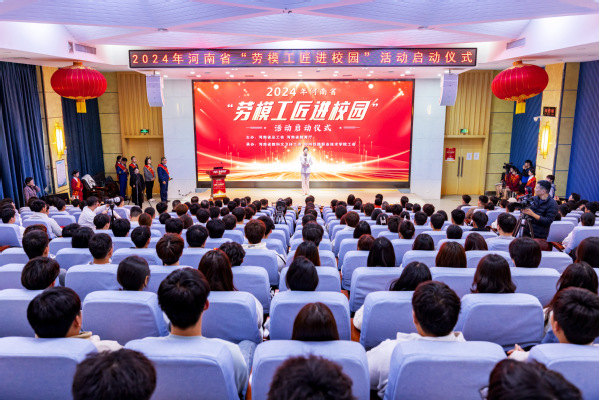 为大力弘扬劳模精神、劳动精神、工匠精神,激励青年学生走技能成才、技能报国之路,3月26日,2024年河南省“劳模工匠进校园”活动启动仪式暨首场宣讲活动在我校隆重举行。河南省总工会副主席、党组成员黄健,学校党委书记田道敏,省总工会宣传教育部部长、一级调研员高颖嘉,省教科文卫体工会主席张学勇,省教育厅体卫艺处副处长王凯,学校党委副书记、纪委书记谢乾,劳模工匠代表杨金安、孟瑾、杨震、徐欣以及我校300余名师生代表参加了本次活动。