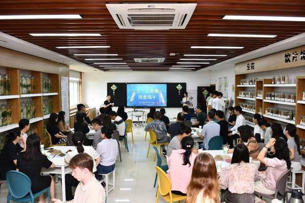 活动现场,广大师生按照讲解巧手翻飞,互相分享着制作香囊的经验,热烈讨论如何做出更加精美的香囊,实训室里弥漫着一股淡淡的花草芳香,格外沁人心脾。艾叶、丁香、白芷、川芎、藿香、玫瑰、辛夷等具有不同功效的中药材料被装入袋子做成了一个个防蚊驱虫、凝神静气、健脾养胃、放松身心的香囊中,大家提前感受到了端午节日的氛围。