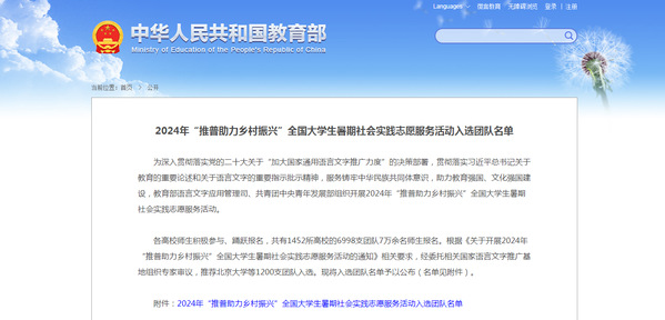 7月2日,教育部语言文字应用管理司、共青团中央青年发展部公布2024年“推普助力乡村振兴”全国大学生暑期社会实践志愿服务活动团队入选名单,我校赴中牟县推普助力乡村振兴服务队在全国6998支团队中脱颖而出,成功入选。