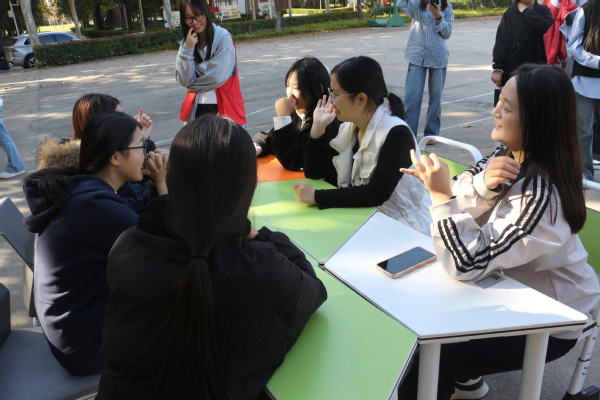 活动以“体验育人”为理念,精心规划了三大互动板块。在“逻辑推理角”,活动从单纯的智力竞技升华为沟通艺术的实践平台,学生通过角色代入学习共情与理解,在语言交锋中打磨思辨能力;“默契挑战区”环节,通过非语言协作与心灵共鸣,让团队成员在无声的默契中建立起深厚信任;而“趣味竞技场”则以轻松活泼的形式点燃全场热情,欢笑声与助威声交织回荡,学生之间情感距离在互动中悄然拉近。