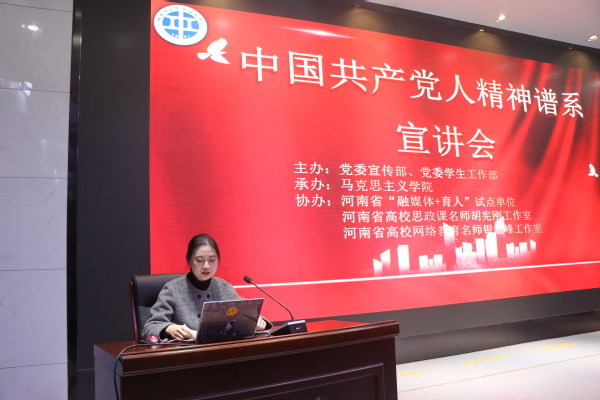 为深入学习宣传贯彻党的二十届四中全会精神,深刻理解和把握以伟大建党精神为源头的中国共产党人精神谱系,将全会战略部署转化为办学治校的实践动能,12月11日下午,我校在第二报告厅举办“中国共产党人精神谱系”宣讲报告会。本次报告会由党委宣传部、党委学生工作部主办,马克思主义学院承办,河南省高校“融媒体+育人”试点单位、河南省高校思政课名师胡宪刚工作室、河南省高校网络教育名师银韶峰工作室协办。党委宣传部、党委学生工作部、马克思主义学院及各书院负责人及学生代表聆听报告会。