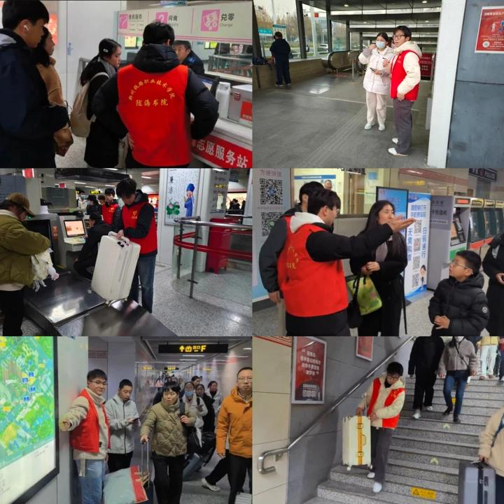 陇海书院组织青年志愿者前往郑州市体育中心地铁站,开展“暖心护航,志愿同行”服务,引导乘客进出站、协助购票、解答问询,展现学子专业素养与社会担当。