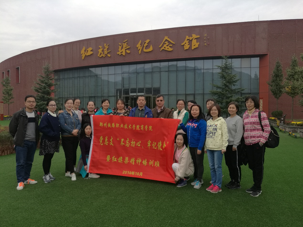 10月20日,商学院党支部组织全体教师党员以及教师积极分子赴林州市红旗渠,开展“不忘初心,探寻红色足迹,学习红旗渠精神”主题党日活动。通过现场教学、音像教学、实地体验等多种形式,多角度全方位地学习红旗渠精神。