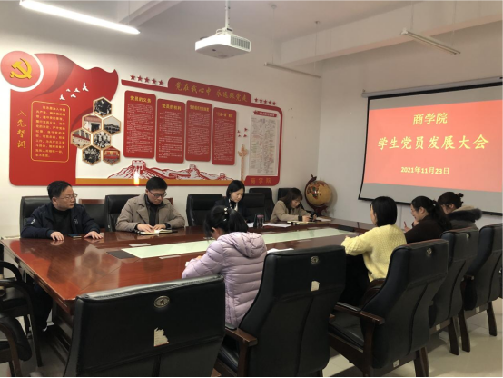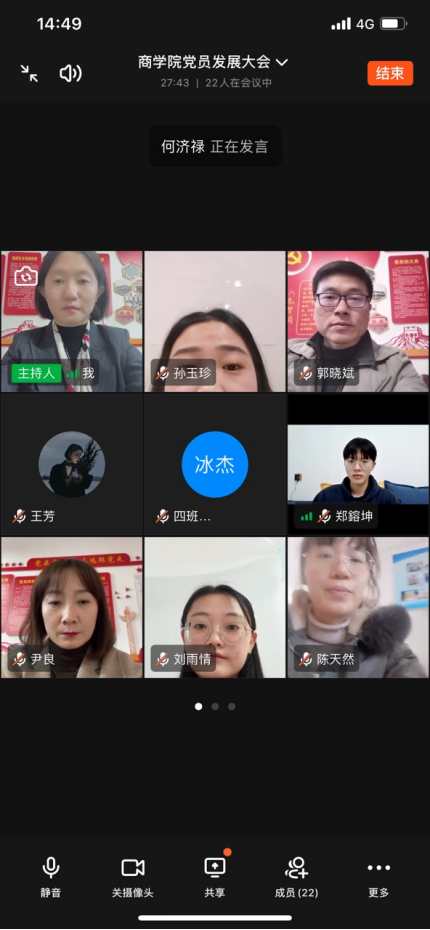 近日,商学院教工第一党支部通过钉钉视频会议的方式,召开了2021年下半年党员发展线上线下大会。参加会议的有:学院党总支书记郭晓斌、副书记尹良,教工第一党支部全体党员教师及13名在外地实习的19级学生发展对象,会议由支部书记冯佳主持。