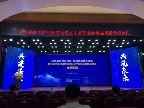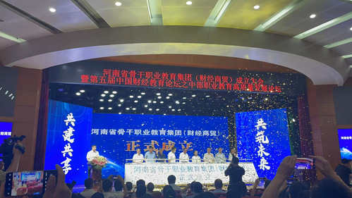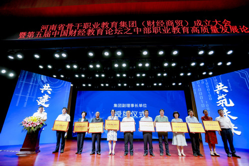 8月24日上午,河南省财经商贸职业教育集团成立大会暨第五届中国财经教育论坛之中部职业教育高素质发展论坛在郑州举行,我校当选河南省骨干职业教育集团(财经商贸)副理事长单位,校长马玉霞应邀出席会议并当选副理事长,商学院院长刘波及市场营销和大数据与会计专业教研室主任参加了会议。