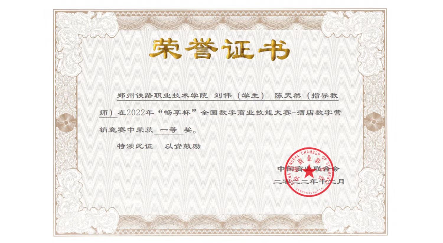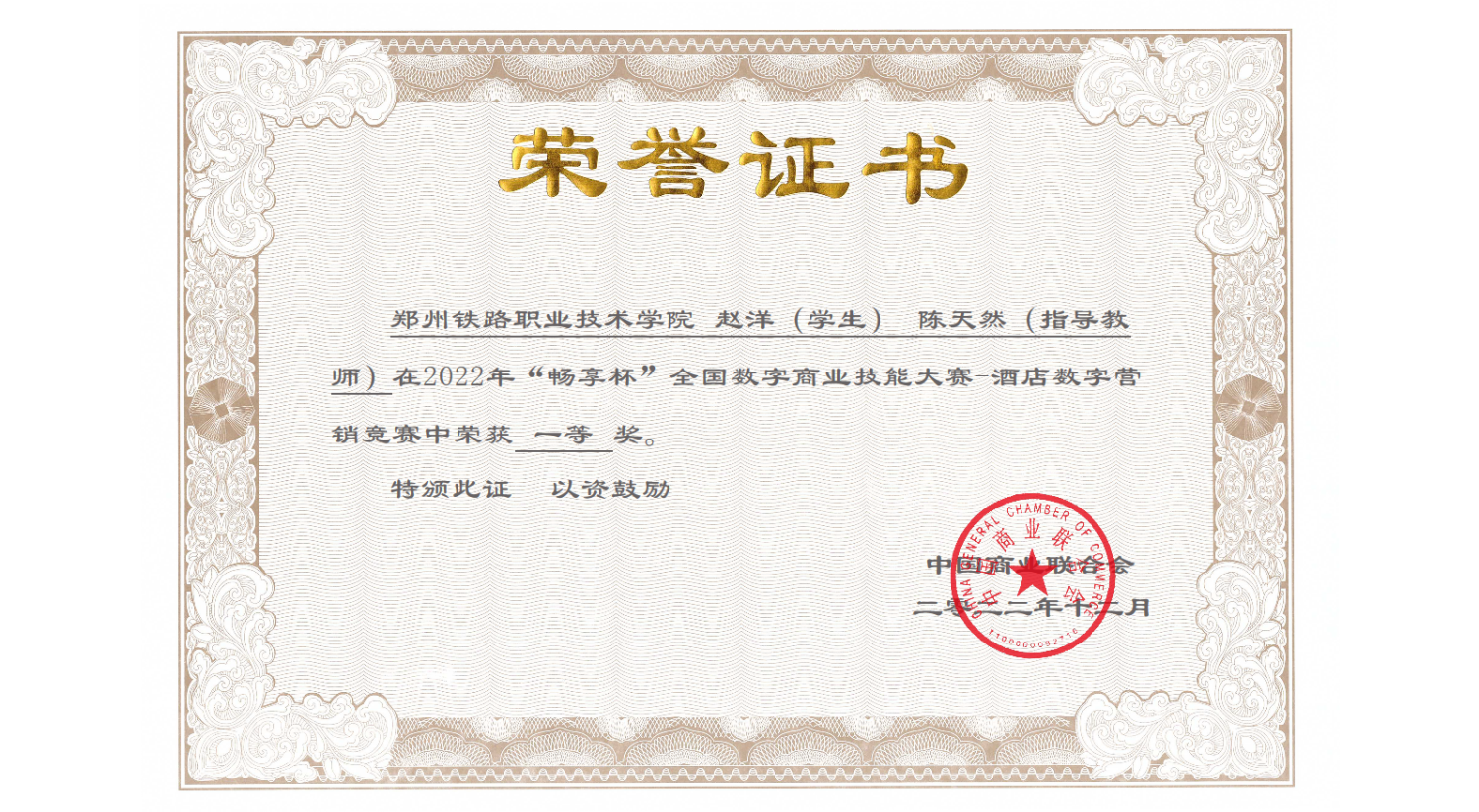 2022年12月28日,2022年“畅享杯”全国数字商业技能大赛酒店数字营销竞赛圆满结束。商学院三名学生代表我校积极参赛,分别以第四名、第八名、第十名的成绩荣获一等奖。