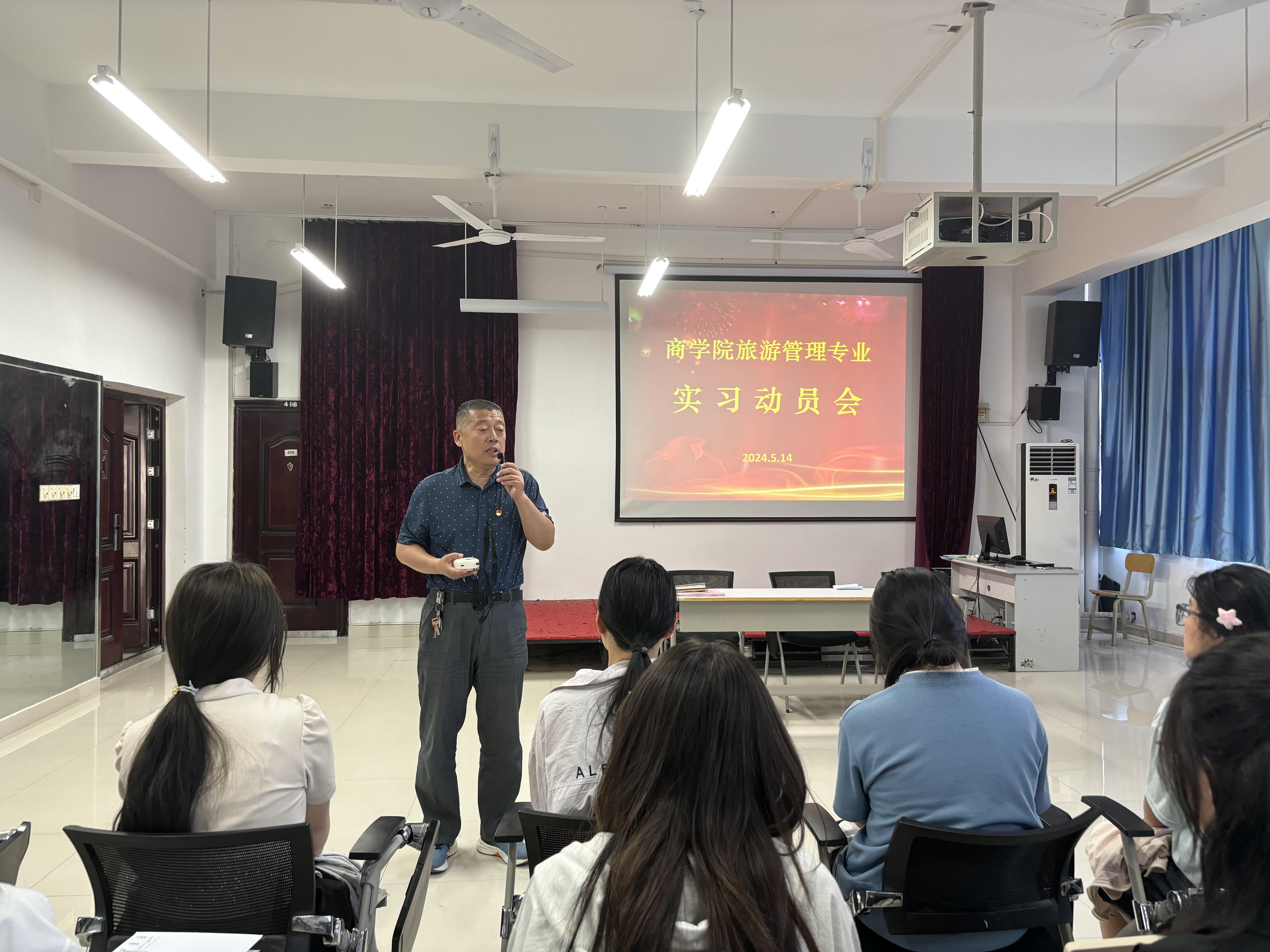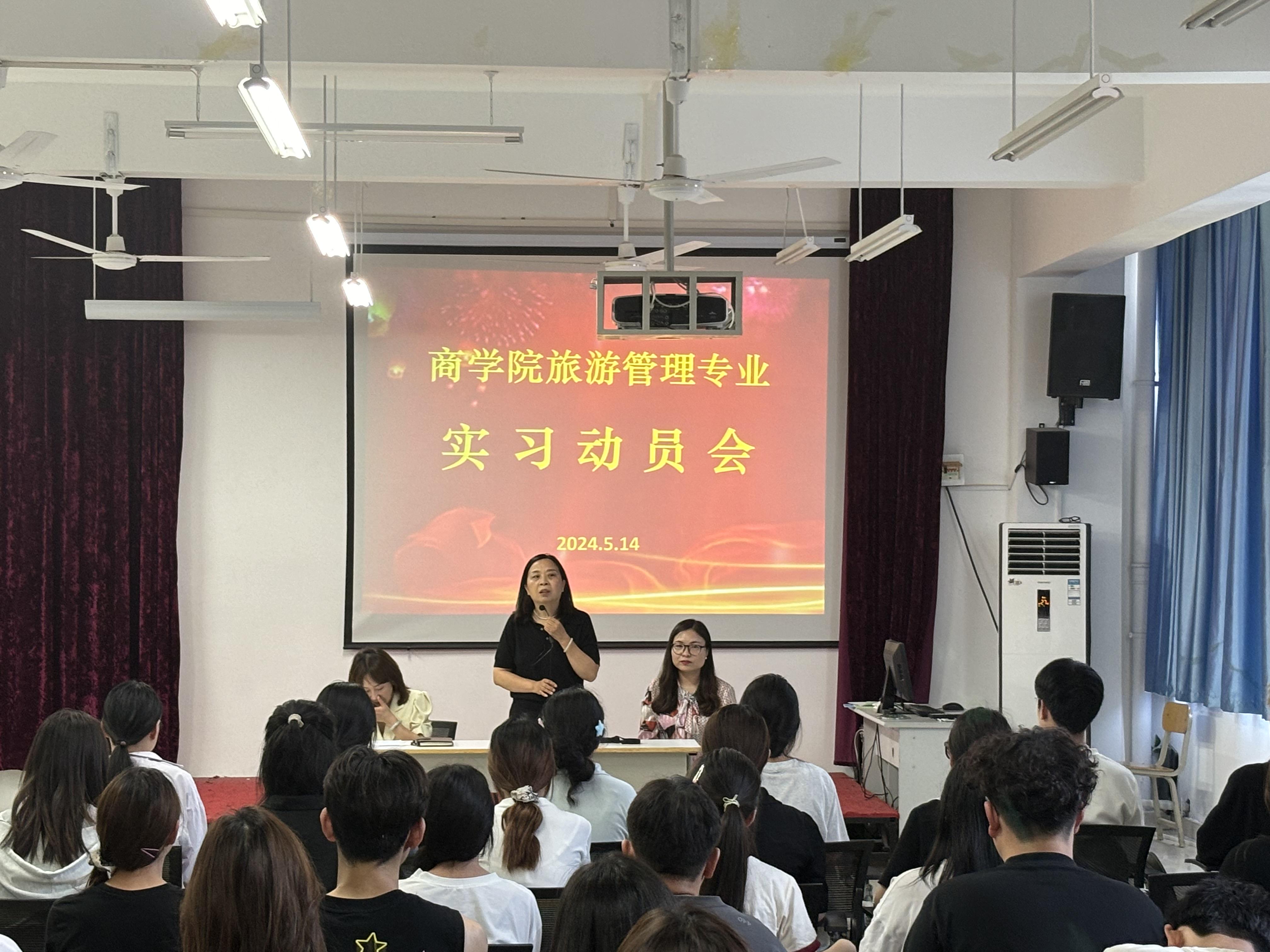 5月14日,商学院召开旅游管理专业22级实习动员大会。商学院院长王冬、党总支书记刘波、旅游管理教研室老师和辅导员参加此次动员会。本次大会旨在帮助学生明确实习目标,增强实习意识,为即将到来的实习生活做好充分准备。