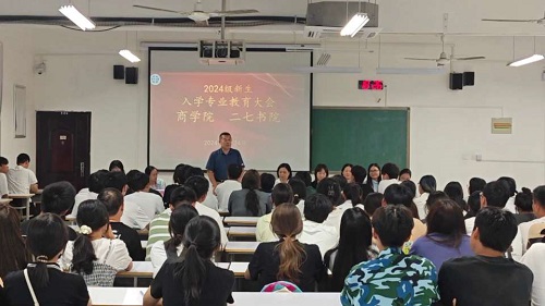 9月24日,商学院、二七书院联合召开2024级新生入学专业教育大会。商学院领导班子成员、专业教研室主任、以及二七书院新生辅导员参加会议。