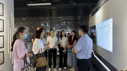 在公司人力行政总监董娥和校园招聘主管吕连生的引领下,团队首先参观了展厅,对公司的发展历程、业务范围、生产工艺以及市场布局等有了沉浸式体验。