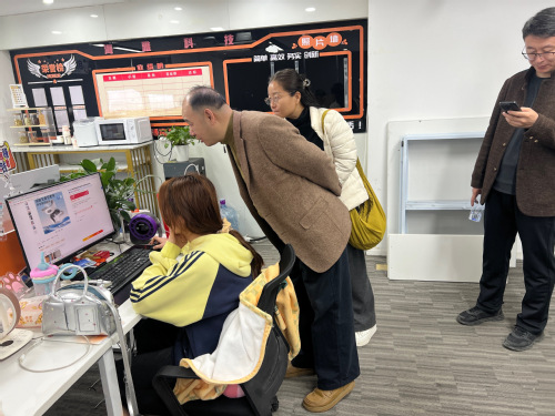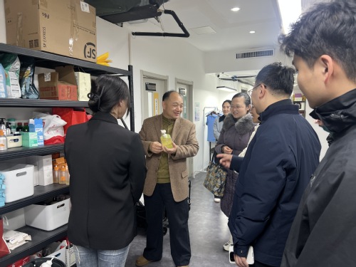 随后,在总监李俊佳带领下,实地参观了企业产品展示区、办公环境及直播场景,深入考察了选品、上架、直播推广等全流程运作。