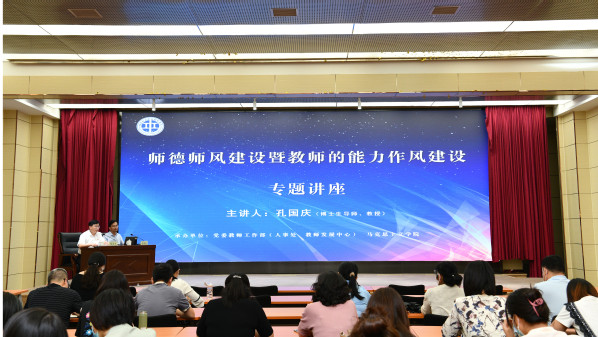 孔国庆以《不忘初心、牢记使命 从社会主义核心价值中找寻人生价值实现之路》为题围绕“初心的伊甸园”“不忘初心的价值”“不忘初心的逻辑起点”三个方面展开深入阐释。讲座站位高远、视野宽阔、内涵丰富,既有对党的优良干部作风的继承和弘扬,又结合新时代新形势新任务,对高校教师能力素养提出了新的思考和见解,具有很强的理论性、实践性、针对性和指导性。
