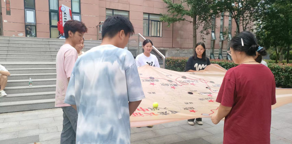 随后“重走红军路”更是将长征精神融入其中,团队全员拉住长征地图边缘,通过全员配合协作,使球从江西瑞金(或指定地点)出发,按照长征路线图突破层层关卡,依次经过长征重要事件发生区域,最终安全抵达陕西延安。整个过程不仅让学生们体验了长征的艰辛,更让他们深刻感受到了红军战士的坚定信念和不屈不挠的精神。