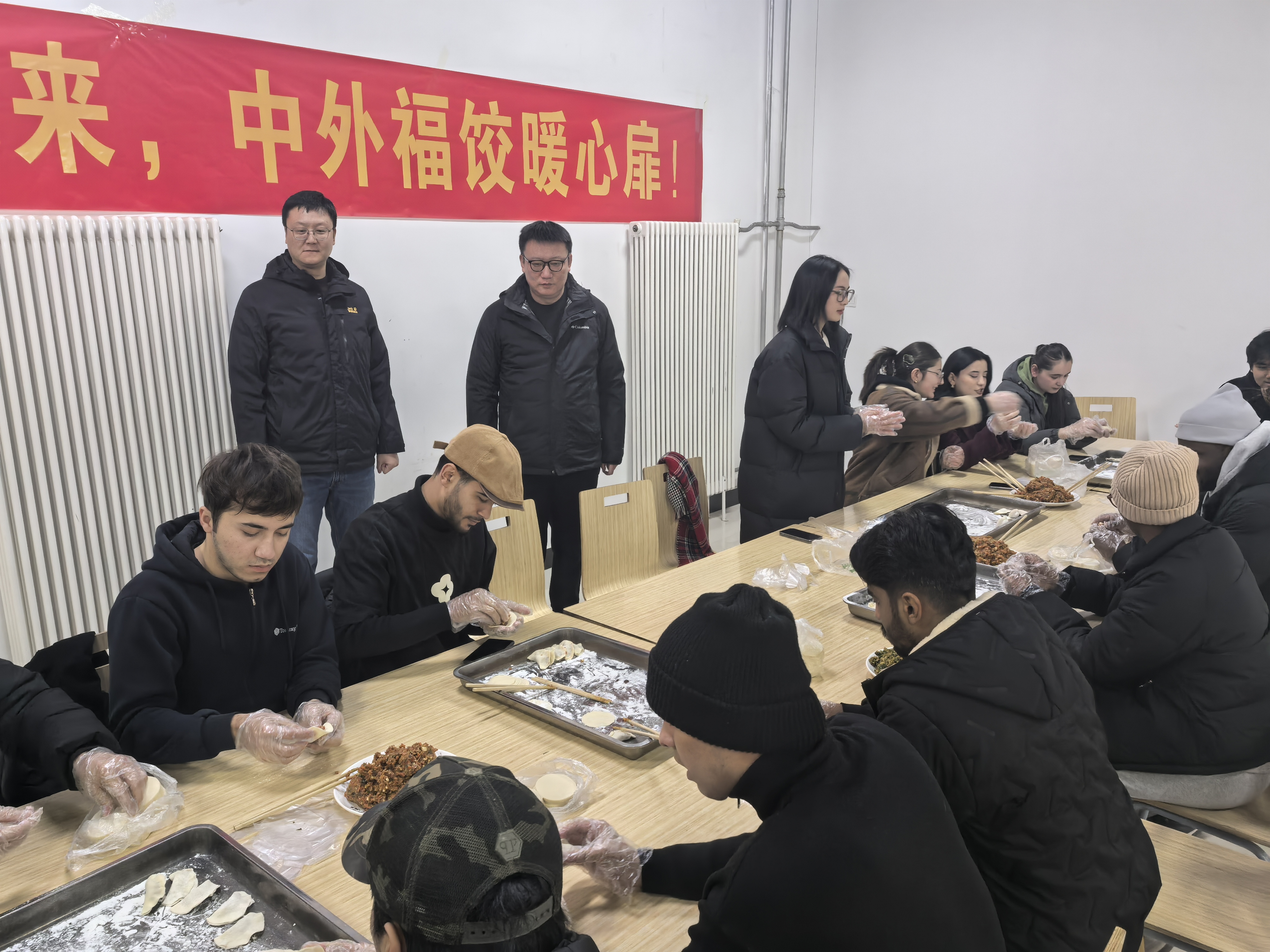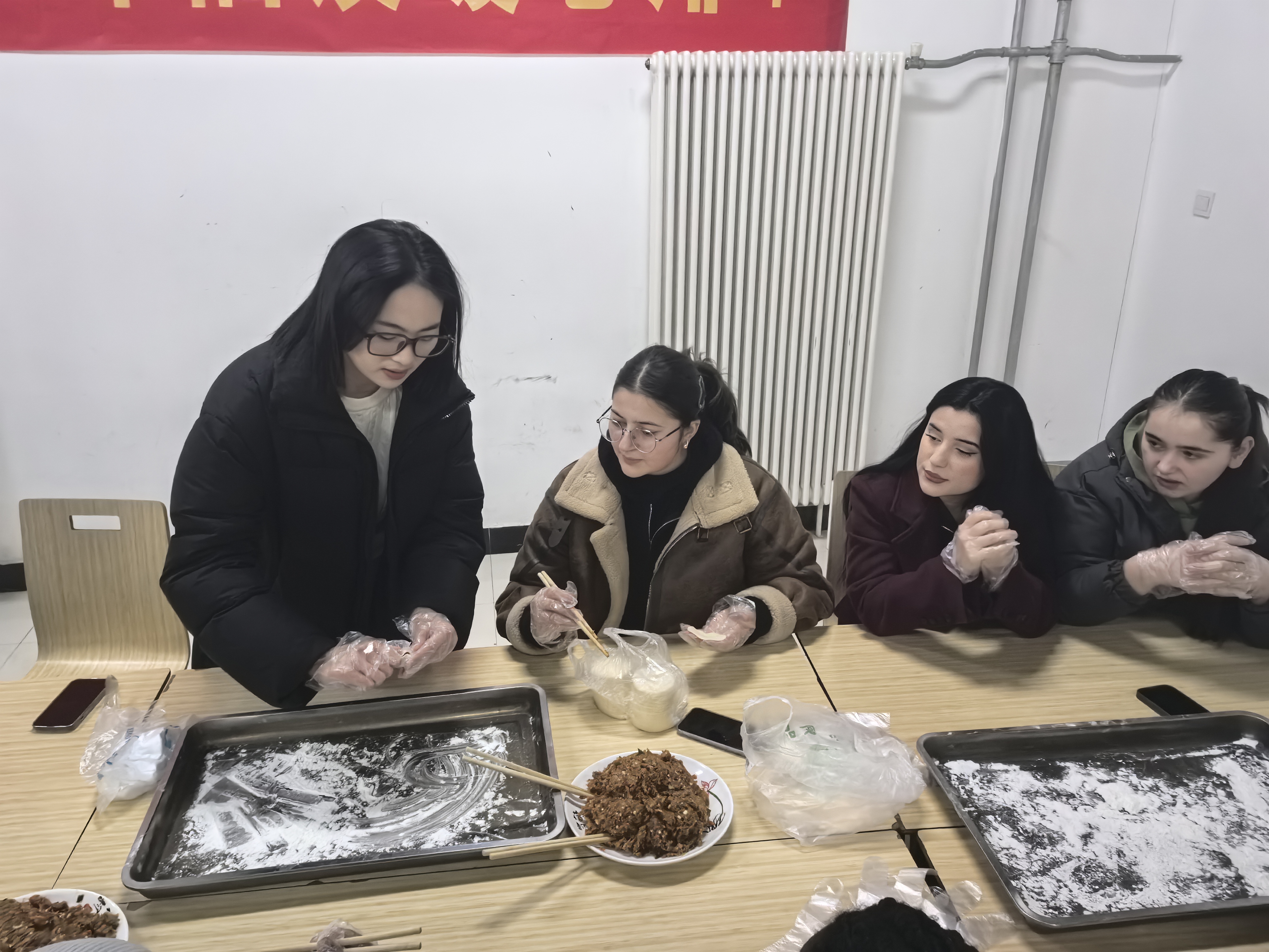 冬至寒意浓,福饺暖心扉。为弘扬中华传统文化,增进留学生对中国传统节气冬至的认知与感受,12月20日,在学校后勤服务中心支持下,我校来自南非、津巴布韦、马来西亚、巴基斯坦和塔吉克斯坦等国的留学生们与中国学生在新餐厅一楼欢聚一堂,共同体验中国传统习俗,迎接冬至的到来。