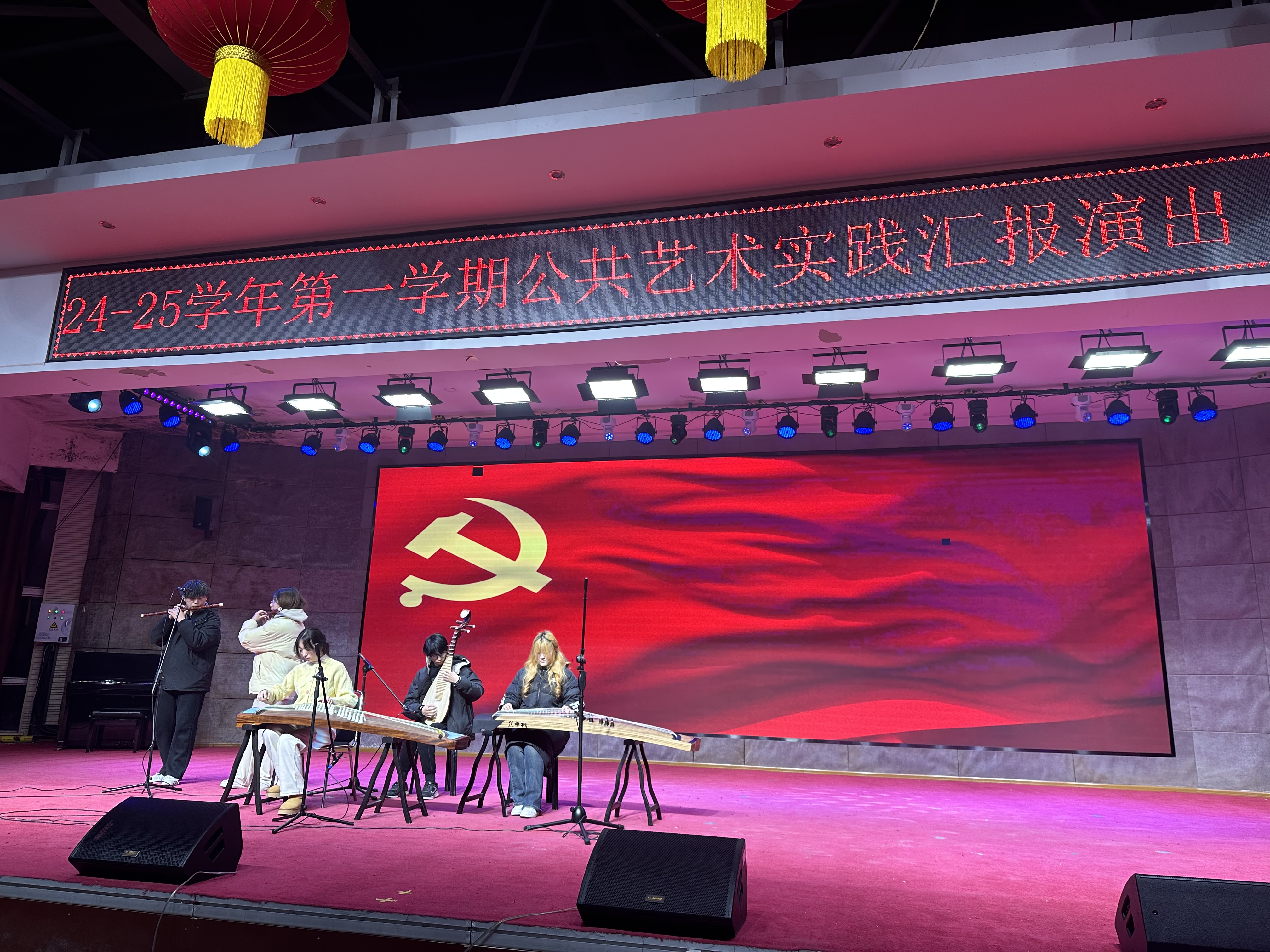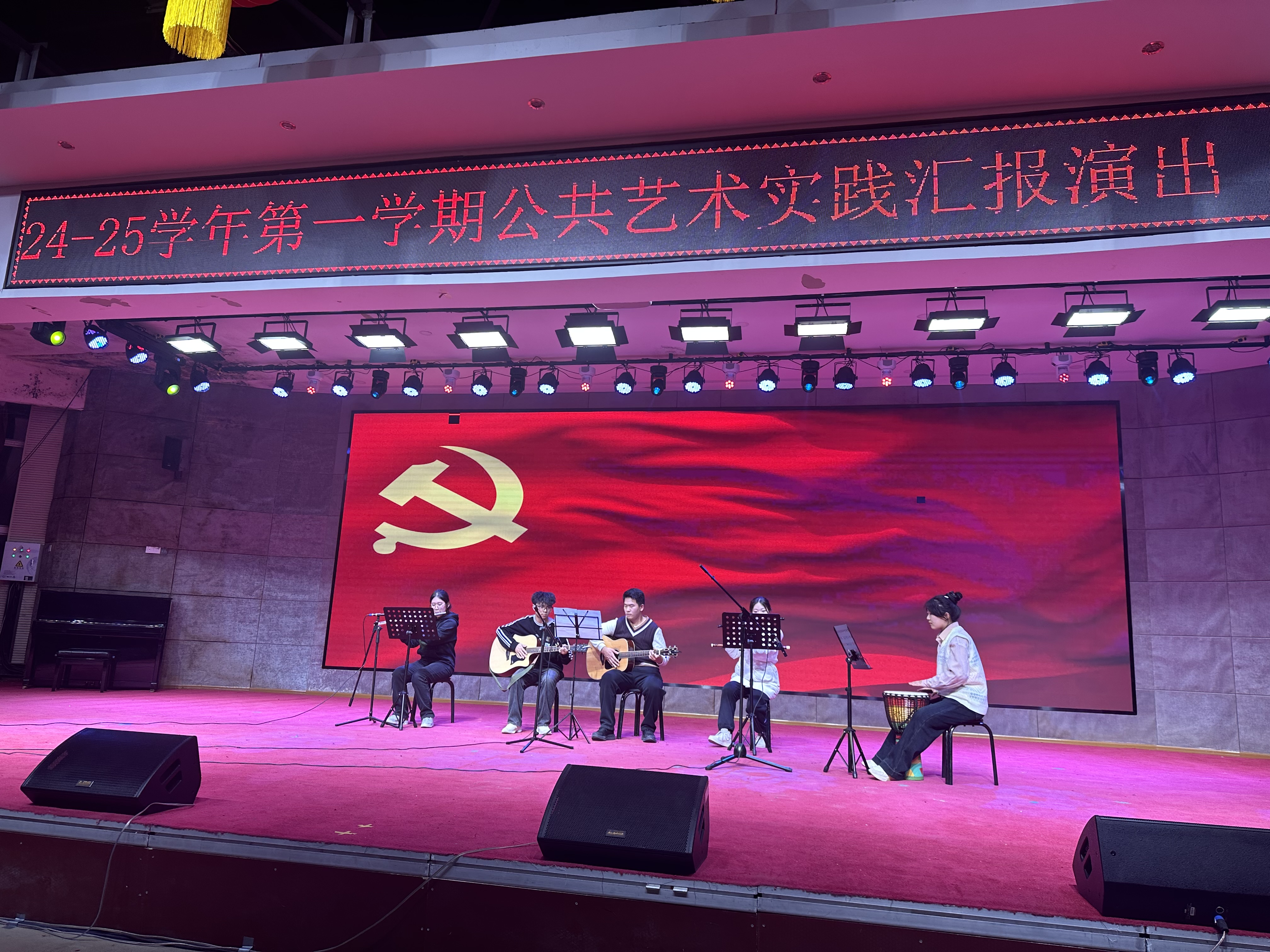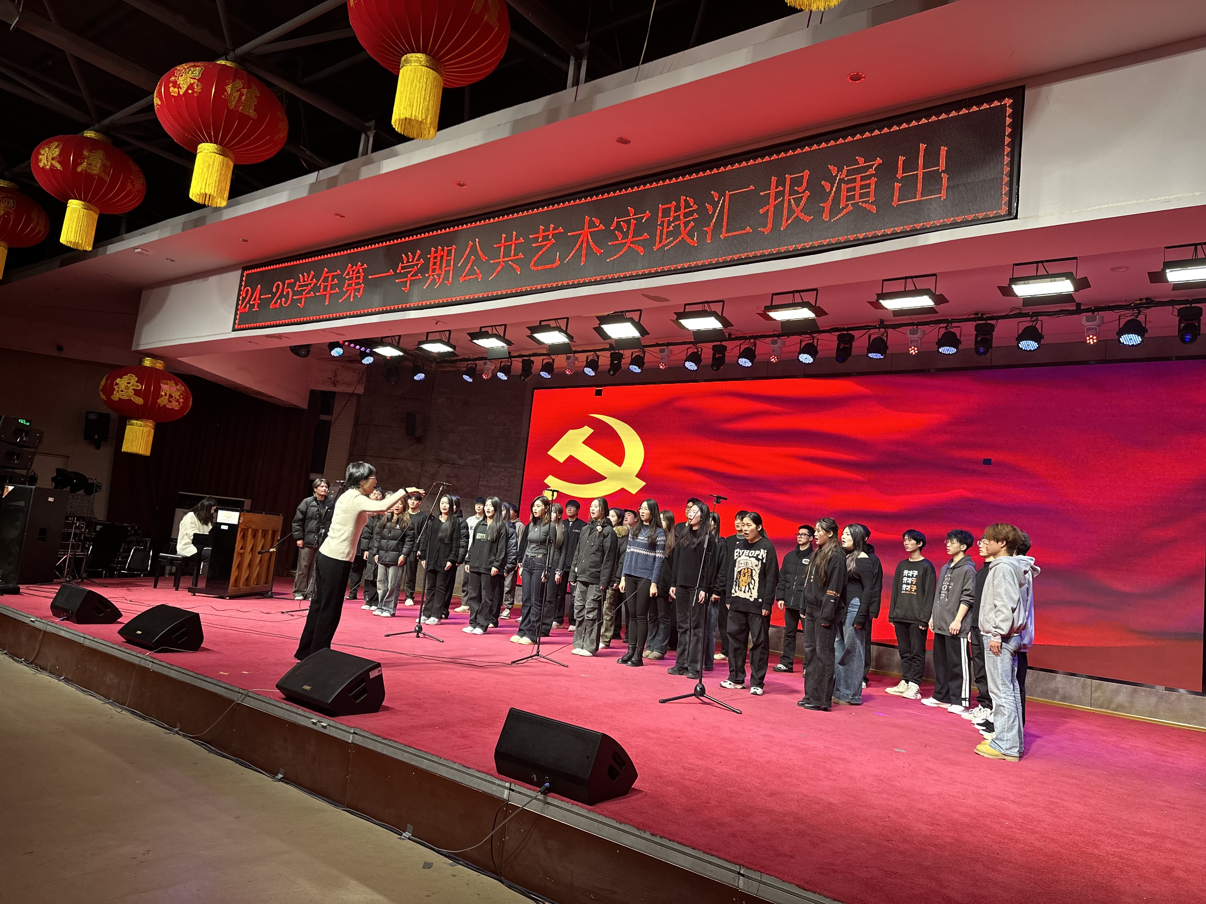 为进一步丰富校园文化生活,展示我校大学生艺术团和公共艺术实践课的教学成果,12月24日晚,我校在大学生活动中心成功举办了“大学生艺术团展演暨公共艺术实践课汇报演出”。学校公共艺术实践课全体师生参加了汇报演出,此次活动吸引了师生的广泛关注,现场气氛热烈,掌声不断。