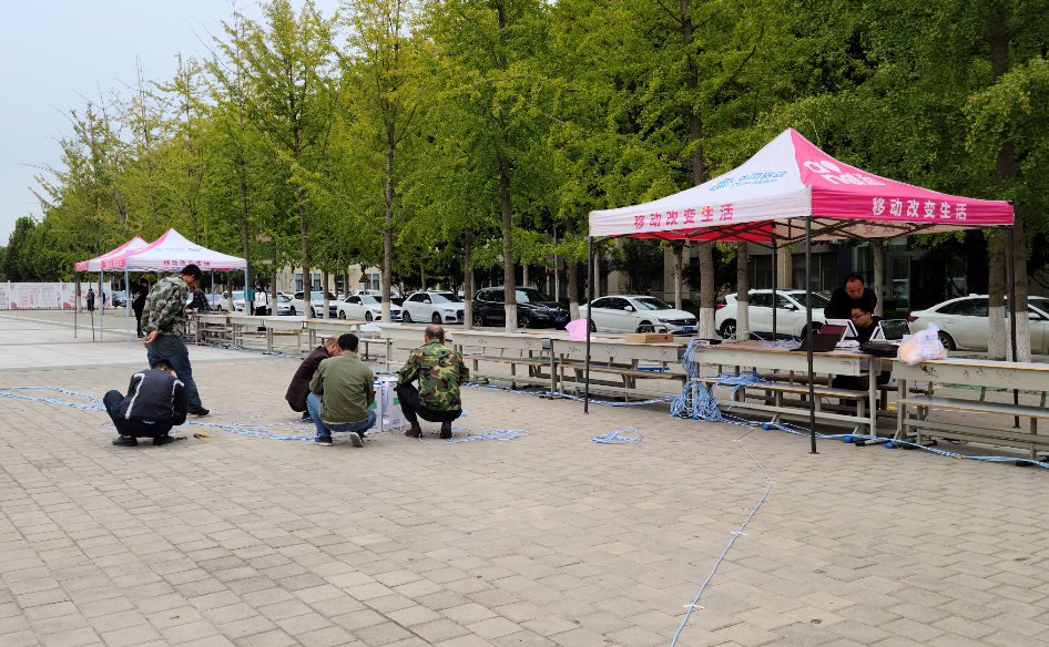 今年的迎新保障工作分布在新校区和幸福校区,信息化办公室提前制定迎新网络保障方案,并对迎新专用线路进行调整、测试工作。在迎新日前一天根据现场状况完成全部线路部署。