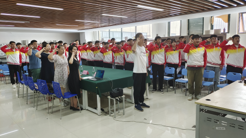 伴随着庄严的国歌,会议正式开始。马勇斌等46名发展对象依次汇报了自己的入党动机和实际表现,入党介绍人赵亮、唐华瑞、梁智涵分别对以上46名发展对象能否入党表明意见。赵亮同志、唐华瑞同志分别报告了46名同志的公示情况和审查情况,在充分讨论与表决后,党支部书记王晓靖宣读支部大会决议并指出:全体预备党员应以此为契机,进一步加强学习,严格要求自己,努力改正不足,起到先锋模范作用。最后,宣传委员赵亮带领全体党员庄严宣誓,全体起立奏唱国际歌。