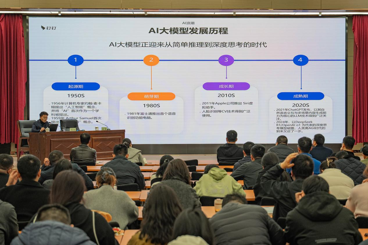 本次培训共邀请2位在数智领域具有丰富实践经验的专家学者进行授课。江苏金智教育信息股份有限公司经理杨谋环针对“辅导员工作日志”专项模块进行详细介绍,重点就学生请假、谈心谈话、晚间查寝、离校管理、家校协同等功能展开操作讲解,并就忘记密码、预警风险、保护隐私等集中问题进行一一解答,优化基于角色的一网通办,实施大数据赋能大学治理。阿里钉钉解决方案架构师李正东以《AI智能驱动创新:大模型及钉钉AI的应用探索与实践》为主题,围绕DeepSeek大模型技术突破解析、从大模型(LLM)到智能体(Agent)、钉钉AI助理实操演示三个方面作专题培训,通过AI创作、AI助理、AI视频等,实施智能办公,更好推动学校学生工作向智能化、信息化、科学化发展。