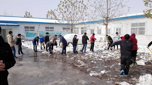 在刘主任的带领下,学生们冒着纷纷扬扬的雪花一起挥锨铲雪,劳动现场呈现一派热火朝天的景象。由于条件的限制,学校配备的除雪工具只有铁锨,加上低温,使除雪工作更加艰难,学生们的手和脸都冻得通红,然而,这一切丝毫没有影响学生们的热情和工作效率,软件学院/信息工程系学生发扬了吃苦耐劳、顽强拼搏的战斗精神,大家团结协作,顶着寒风,将学校门口的积雪进行清扫。