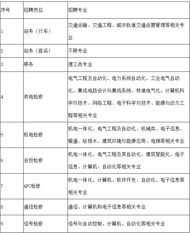 福州地铁集团有限公司是福州市从事城市轨道交通建设和运营的国有独资公司,全面负责地铁项目的投资、规划、建设、运营、管理和沿线地下空间资源的开发利用。福州地铁运营分公司目前负责地铁1号线的运营管理工作,并负责4、5、6号线的筹备工作。 根据既有线路运营及新线筹备安排,福州地铁运营分公司现开展2020届应届生的招收工作。 加入我们,在这里你们可以发挥所学所长,有良好的专业工作条件及发展空间,广阔的晋升空间让你们快速成长!福州轨道交通事业的发展需要你们携手共进! 一、人员需求计划