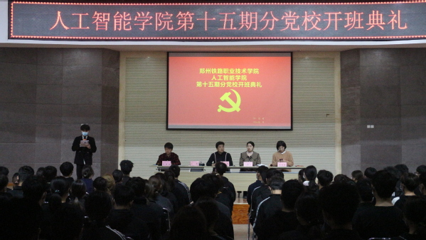 3月25日下午,人工智能学院在大学生活动中心举行第十五期分党校开班典礼,党支部副书记刘杰,学工办主任马鹏飞,组织委员郭亚楠,辅导员王杏、李睿通,20级党校全体学员参加了开班典礼。本次开班典礼由组织委员郭亚楠主持。