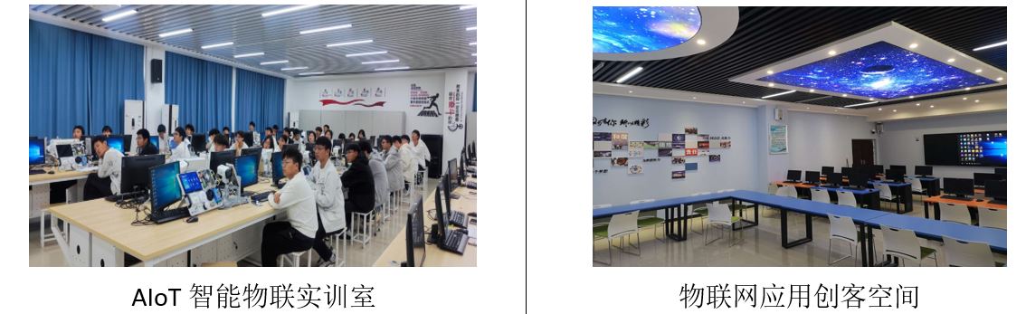 专业构建了基础-综合-创新三级进阶式实践教学体系,打造了集教学、实训、研发于一体的物联网专业实践平台,包括物联网基础实验室、物联网综合技术实训室、传感网应用开发实训室、物联网虚拟仿真实训室、AIoT智能物联实训室,以及物联网应用创客空间。各实验室功能互补、资源共享,形成完整的实践教学闭环。