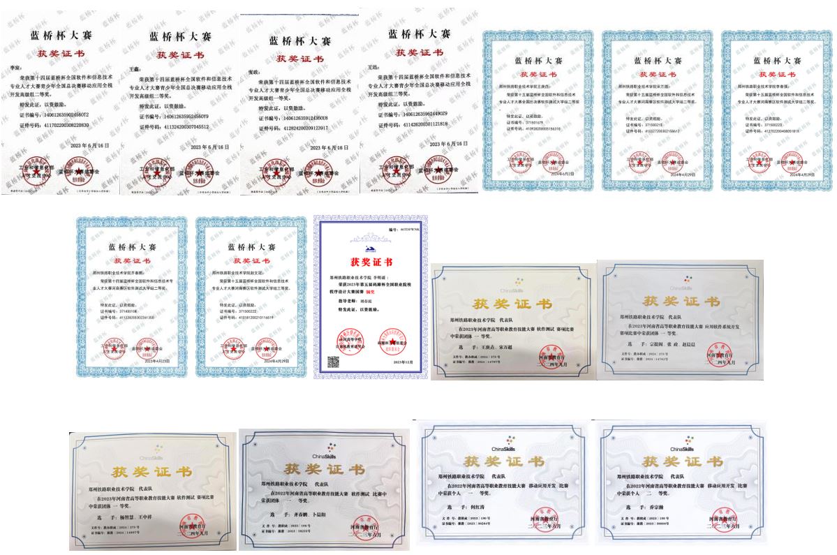 2023年度河南省高等职业教育技能大赛“应用软件系统开发”、“软件测试”等赛项一等奖3项、三等奖1项。