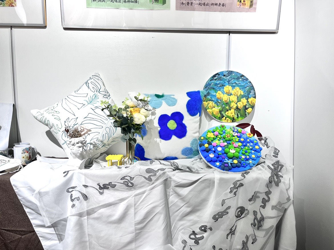 在软装设计领域,组织整个家居空间的灵感非常重要,注重协调材质与色彩的搭配,保持风格和美学的一致,直观清晰的展现设计项目的整体调性、材质运用和色彩搭配。而本次展览采用开放式展览方式,利用空间表现创意和展览的主题。比如自由布局、空间分隔、环境设计、互动元素、开放结构、多层次展示等。为观众提供了多样化、亲近感强烈的观展体验,同时也助于传达作品本身的主题和的意图。这种方式注重空间设计的创新和个性化,以使观众更深入地与艺术互动并产生共鸣,产生了很好的观展效果,也为《室内软环境设计实训》课程画上了一个圆满的句号。