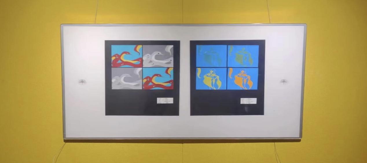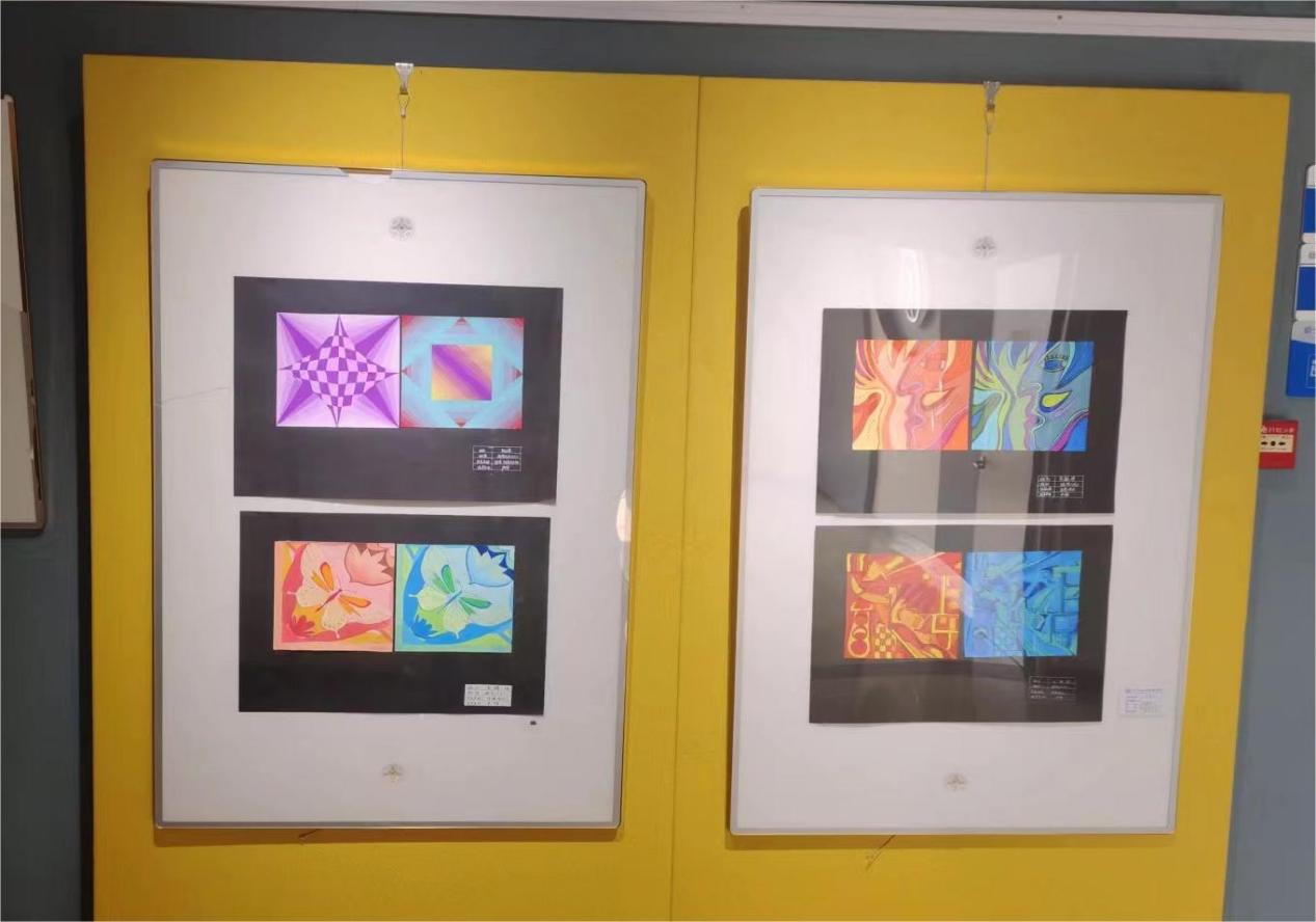 这次展出的是专业基础课,平面构成、色彩构成等作品。平面构成通过点、线、面、为基本构成各种形式画面呈现。色彩构成更是通过色彩的选择、搭配和运用等方面来呈现出不同的视觉效果。学生们精心设计作品通过形状、颜色、布局和空间等等创造出了一系列富有美感和创意的作品,是学生们这一学期努力学习的体现。